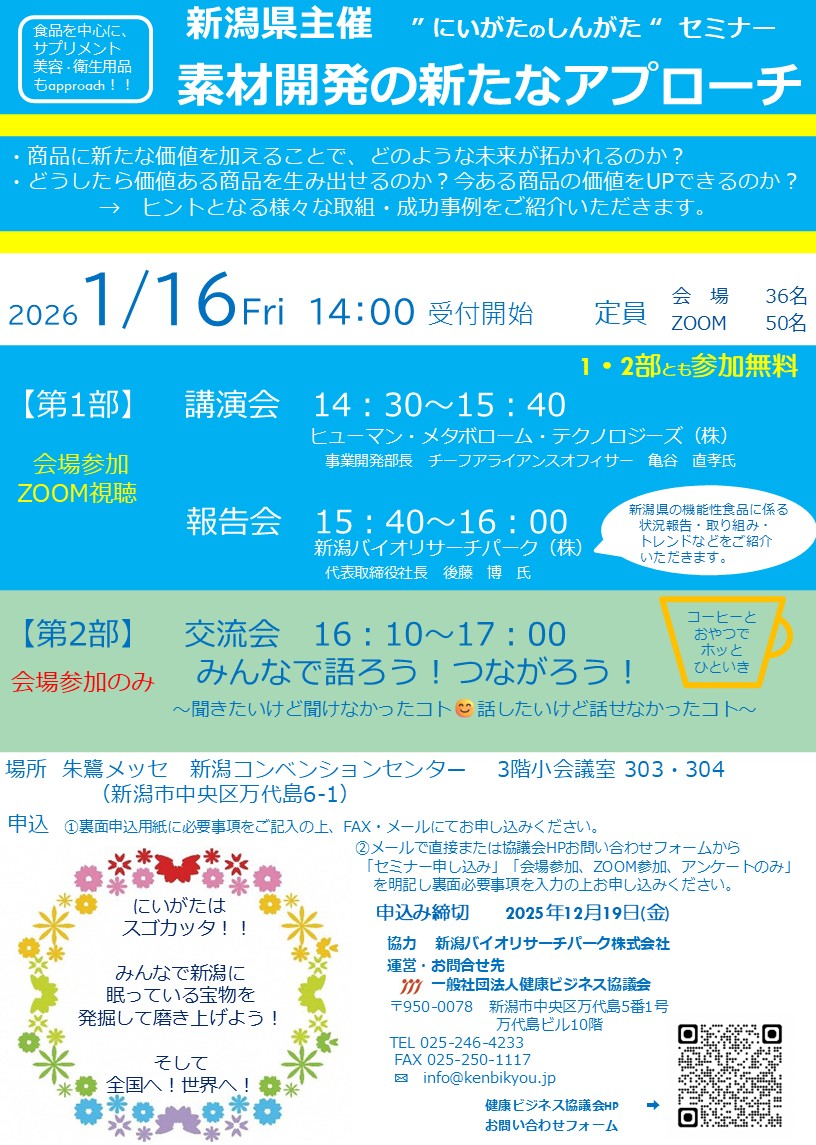 報告会 「新潟県の機能性食品に係る状況報告・取り組み・トレンドのご紹介」