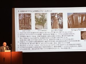 引き続き、吉井木材工業株式会社社長 水野雅晴様より佐渡市の木に指定されている「アテビ」を中心とした木材
