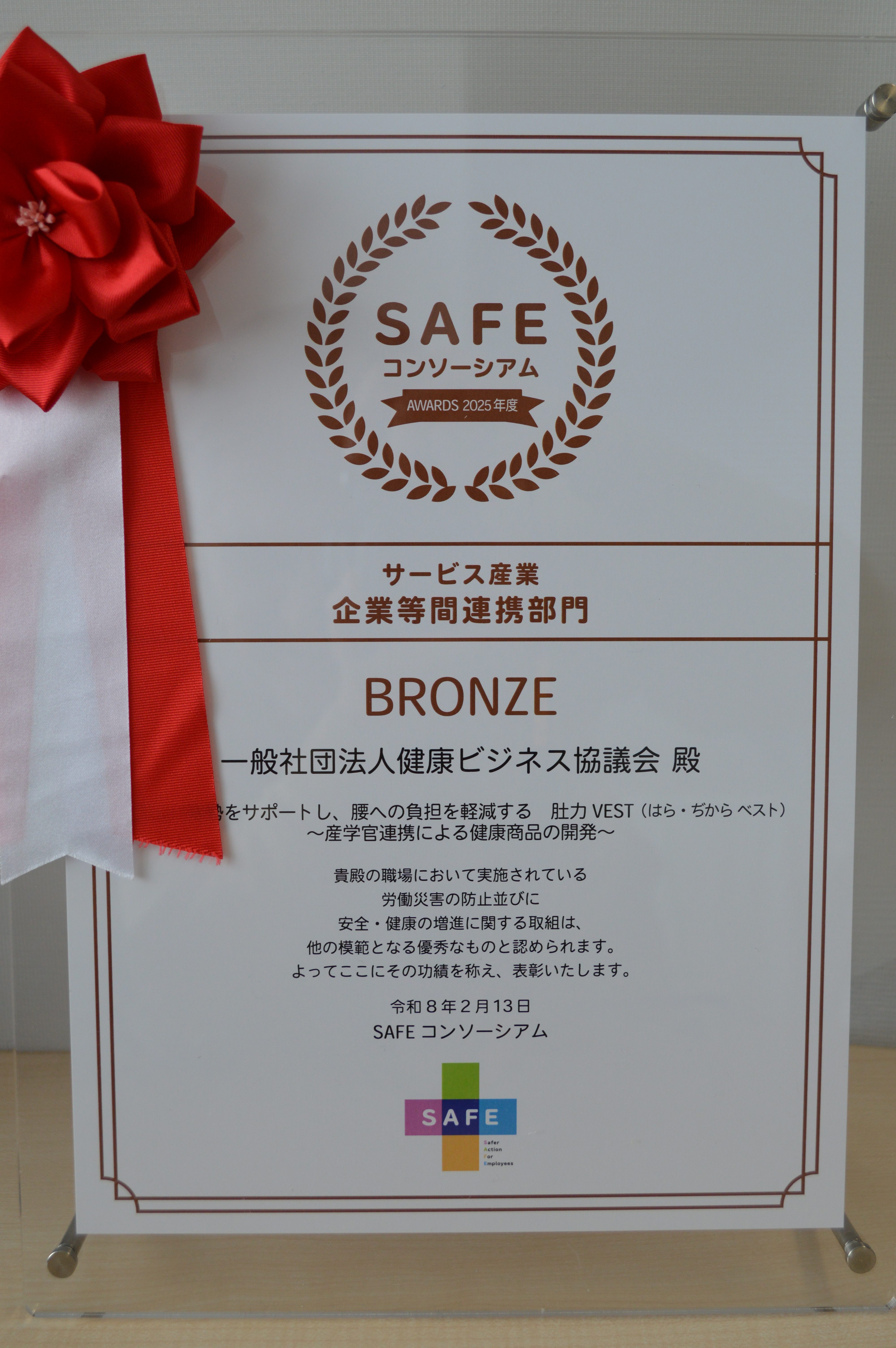 当協議会とオンヨネ株式会社で共同開発した「肚カVEST」が、2025年度 SAFEアワードにおいてブロンズ賞を受賞